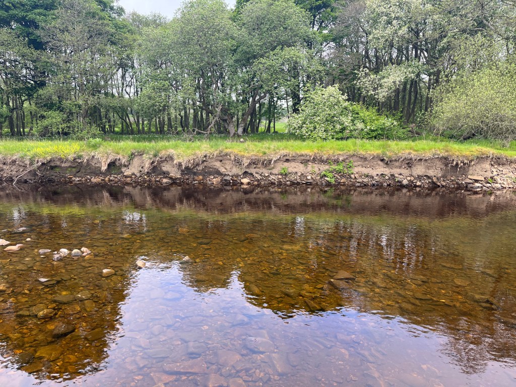 Due to us managing to keep the vast majority of sheep off the site… (a heron just ‘gronked’ in the distance) the grass is so much higher and in a lot of places similar to that inside our small ungrazed ‘exclosures’. We are also starting to see quite a bit of alder regeneration along the riverbank. This is good.