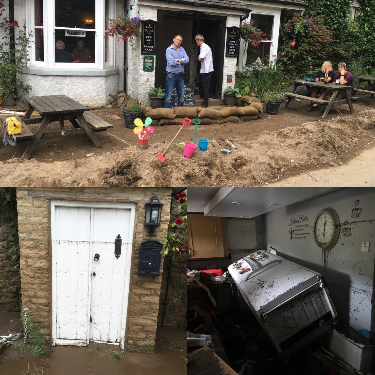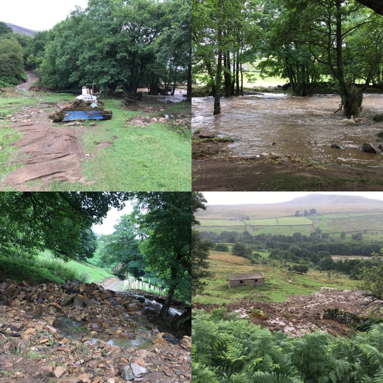 A search online will reveal hundreds of photos and reports that show the devastation of the event and how a community came together (albeit briefly) to repair the damage to lives and property. But below are some more personal ones. Firstly from on our Cluster and then a few from the locality. I was pleased to be able to find a use for my daughter’s old beach toys which she had long since grown out of, and which within minutes of being put outside the Bridge Inn at Grinton, were being enjoyed by a new generation of children!
