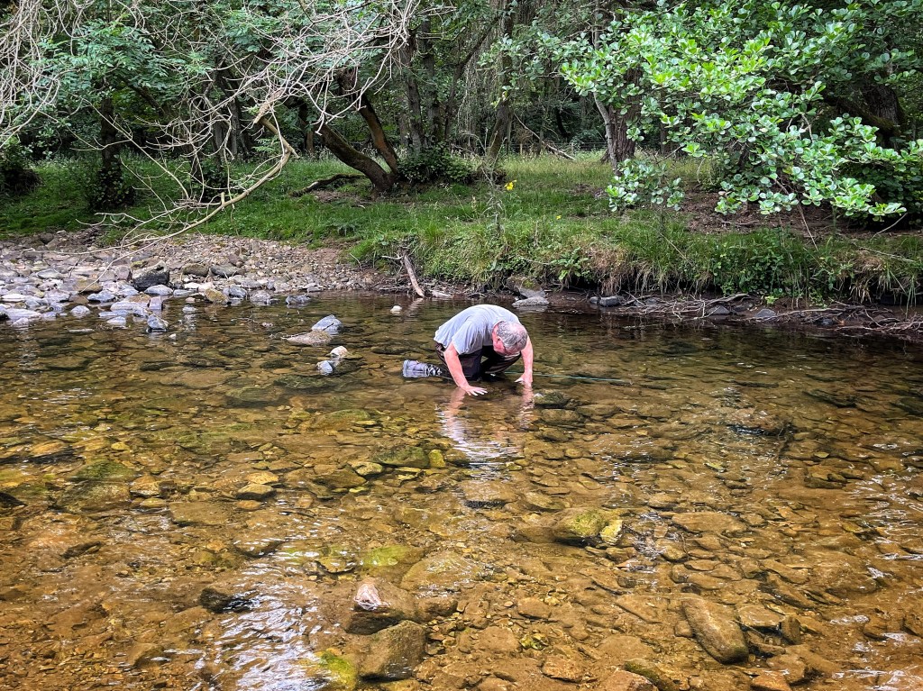 A crayfish surveyor in their chosen habitat.